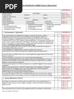 For requirements related to annual inspection and certification of mobile cranes or boom trucks see the following sections of the occupational health and safety regulation and its related guidelines available on.