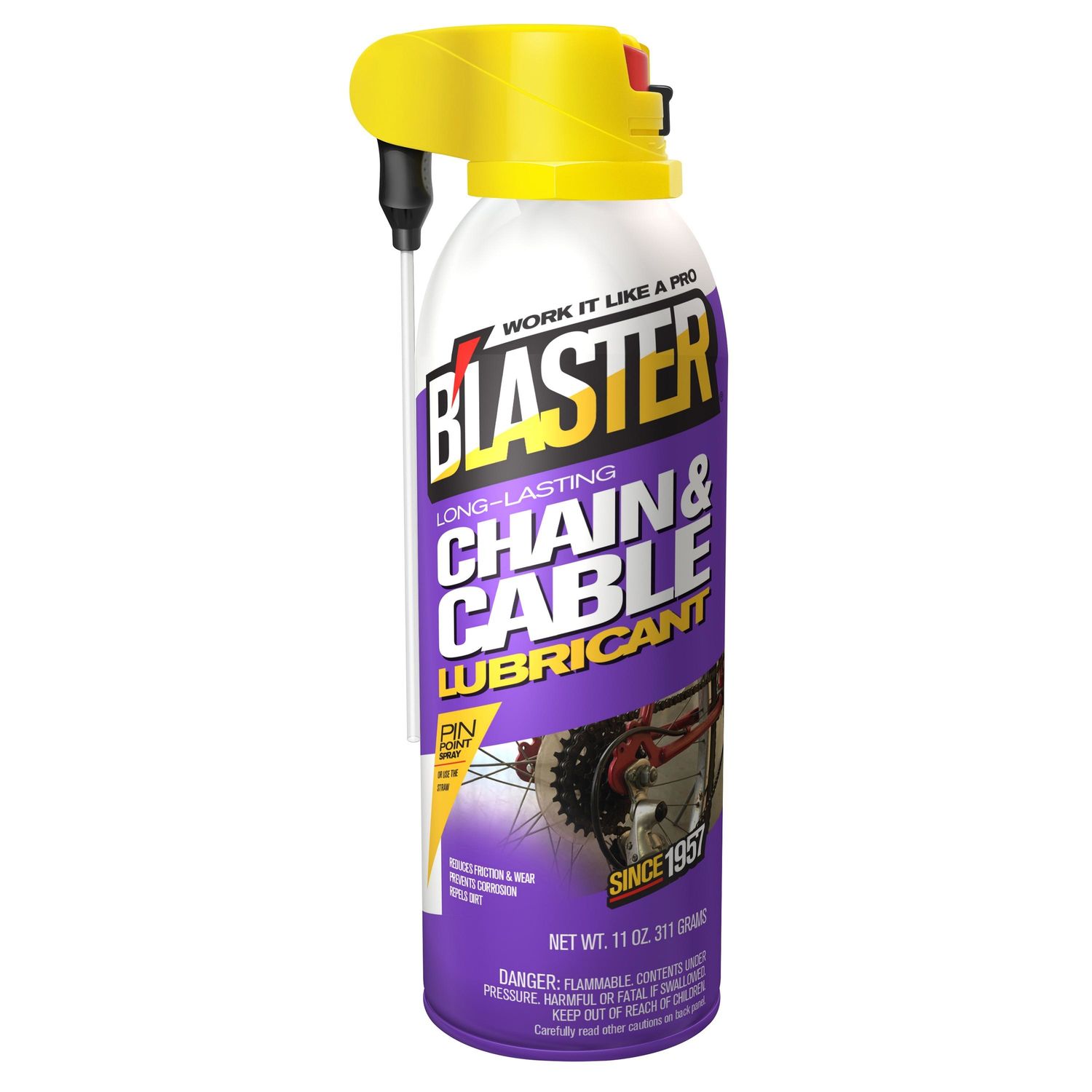 B laster chain and cable lubricant is a long lasting formula designed specifically for use on any light duty chain or wire cable applications.